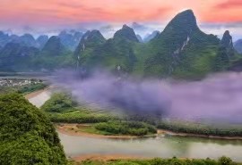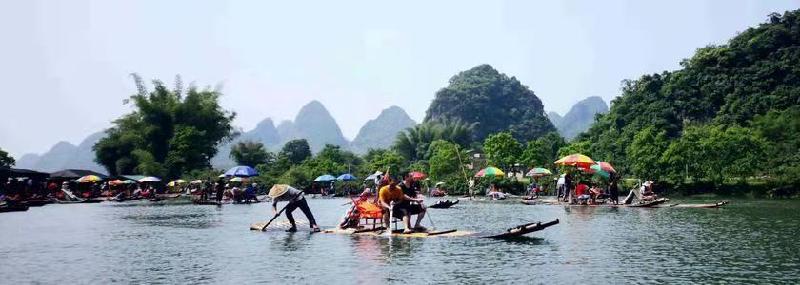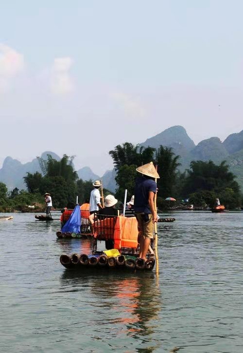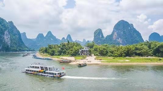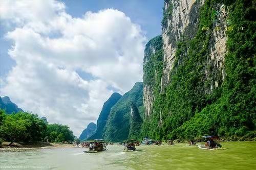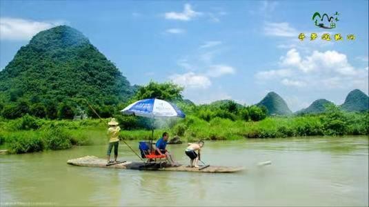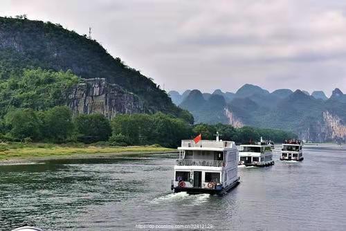 饱览漓江,鸟语花香。碧波漾,闪闪粼光。群山倒影,晃若仙乡。赏梦中景,江中韵,洞中王。