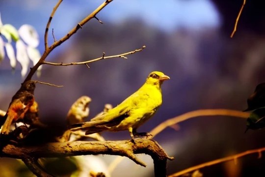 昨夜刚挥马良笔,黄鹂枝上戏村姑。