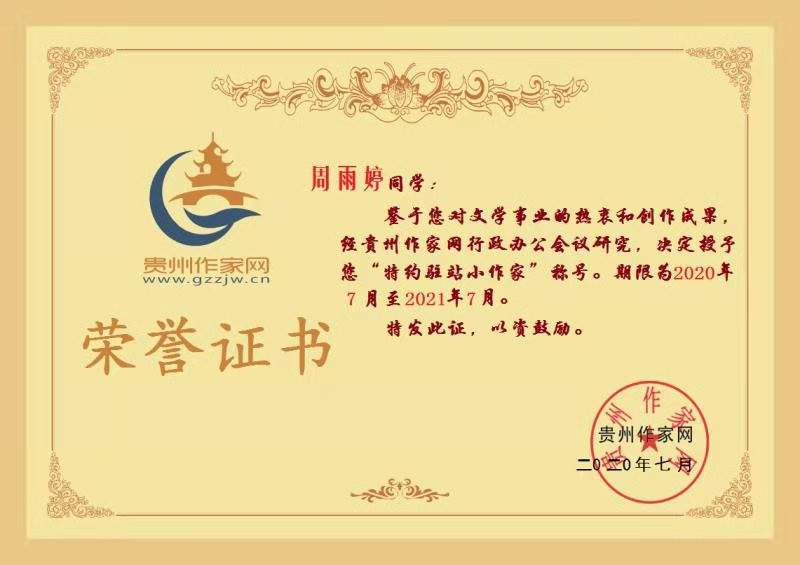 周雨婷,十一岁,贵州省织金人,贵州省织金县纳雍乡中心小学六年级(2)班学生,贵州作家网特约驻站小作家。
