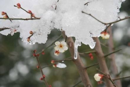 雪落红梅今舍泪,仓黄掉尽绿芽香。