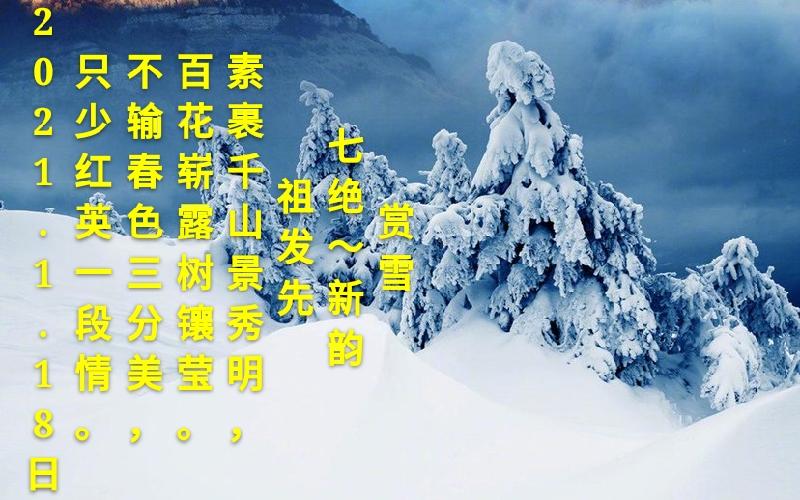 赏雪 七绝~新韵 祖发先 素裹千山景秀明, 百花崭露树镶莹。
