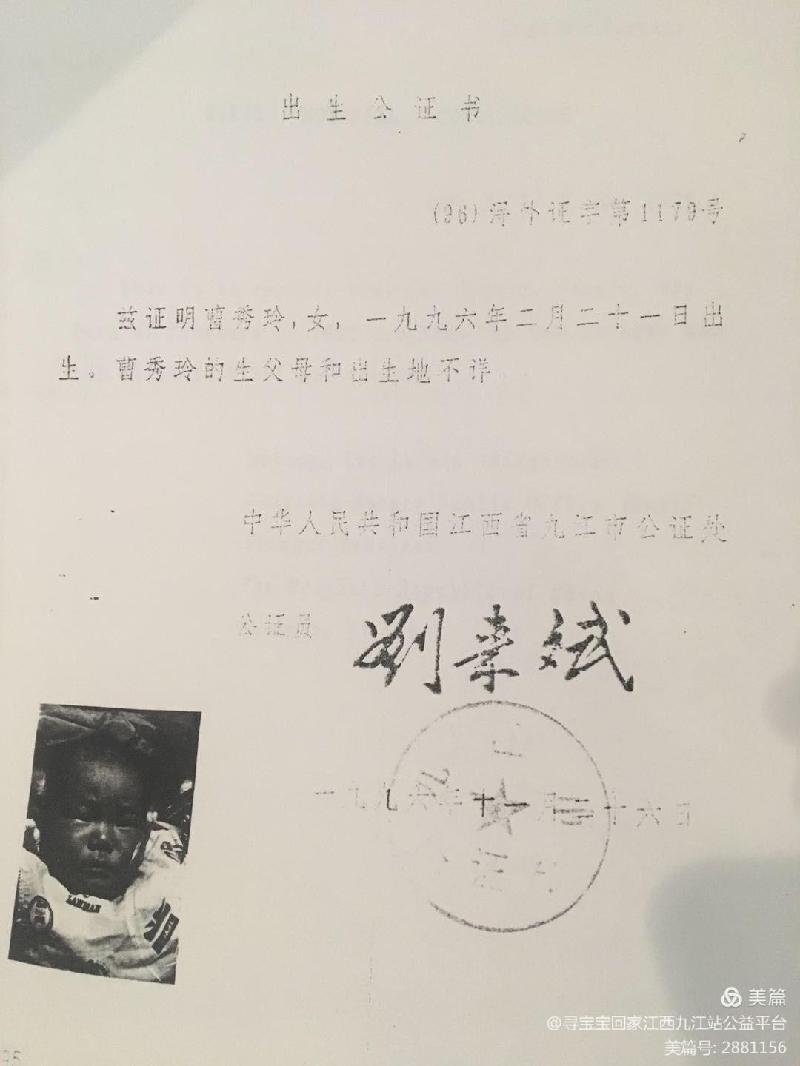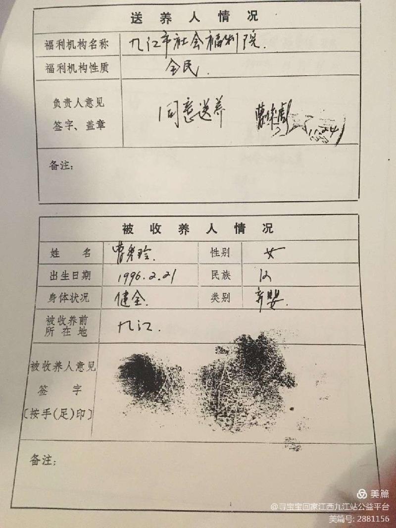 如有疑似家庭、知情或者知道其线索下落,请联系国际寻亲联盟九江市让爱回家寻宝宝回家志愿者服务总队,爱心热线: