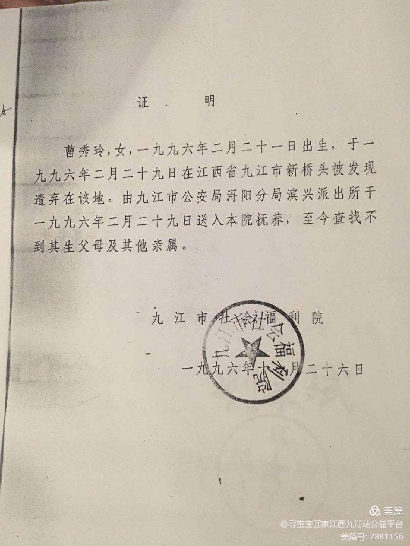 让爱回家江西分会国际寻亲九江市让爱回家寻宝宝回家志愿者服务总队发布