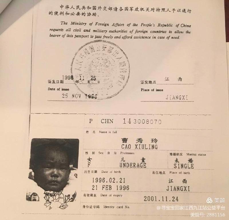 【此信息由国际寻亲联盟《南昌项目》中的寻亲孩子沙拉(曹秀玲)本人提供】