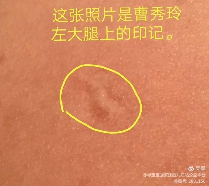 曹秀玲被领养时至今,左大腿上有一个非常小的标记