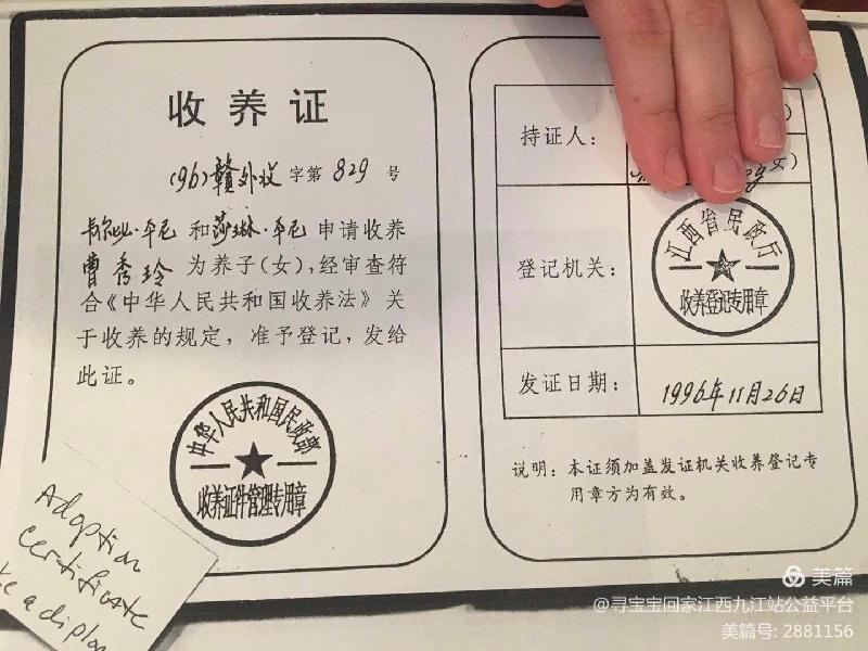 一个被亲生父母遗弃在九江新桥头的女婴,也是迫不得已,谁会放弃自己的亲生骨肉?当年我的亲生父母就是因为迫不得已的原因,不得不将我遗弃。他们可能没有想到的是,我被外国爱心的家庭收养了。虽然生活在国外,但是我们从小就知道自己是中国人,因为我和我父母的皮肤、头发有着不一样的颜色,我知道自己的根在中国。