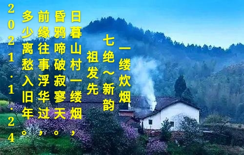 \ 一缕炊烟 七绝~新韵 祖发先 日暮山村一缕烟, 昏鸦啼破寂寥天。