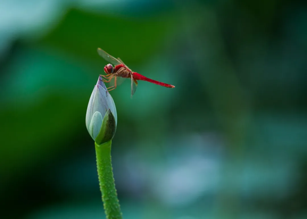 翠绿的荷叶丛中,一枝荷花亭亭玉立,
