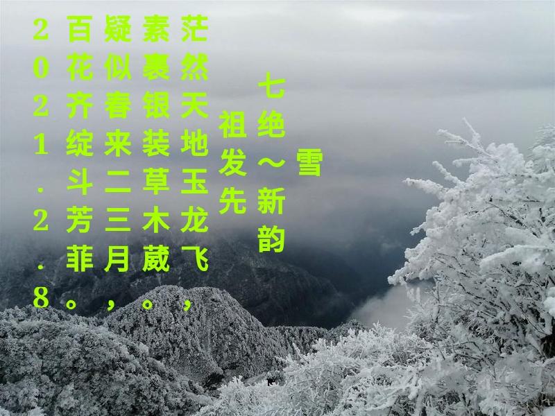 雪 七绝~新韵 祖发先 茫然天地玉龙飞, 素裹银装草木葳。
