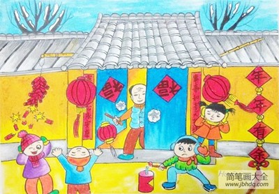 后来每到除夕,人们就在门口贴红纸,挂灯笼。在屋子里点上蜡烛,在院子里烧竹子或放鞭炮。整个除夕,家家都灯火通明,噼啪声不断。从那以后,“年”再也没有来过了。由此就形成了贴春联、点灯、守岁、放鞭炮、拜年等习俗。这个就是中国的传统节日----春节。