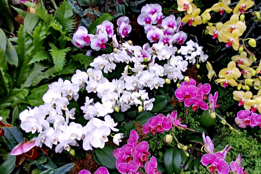 其中,蝴蝶兰仍然是花展的主角,蝴蝶兰的美在于它的花型如翩翩起舞的蝴蝶,一丛丛、一片片似满园飞蝶。而且蝴蝶兰花叶肥厚色、花色也丰富多彩,红黄白紫花色各异、目不暇接。