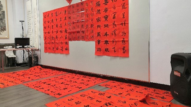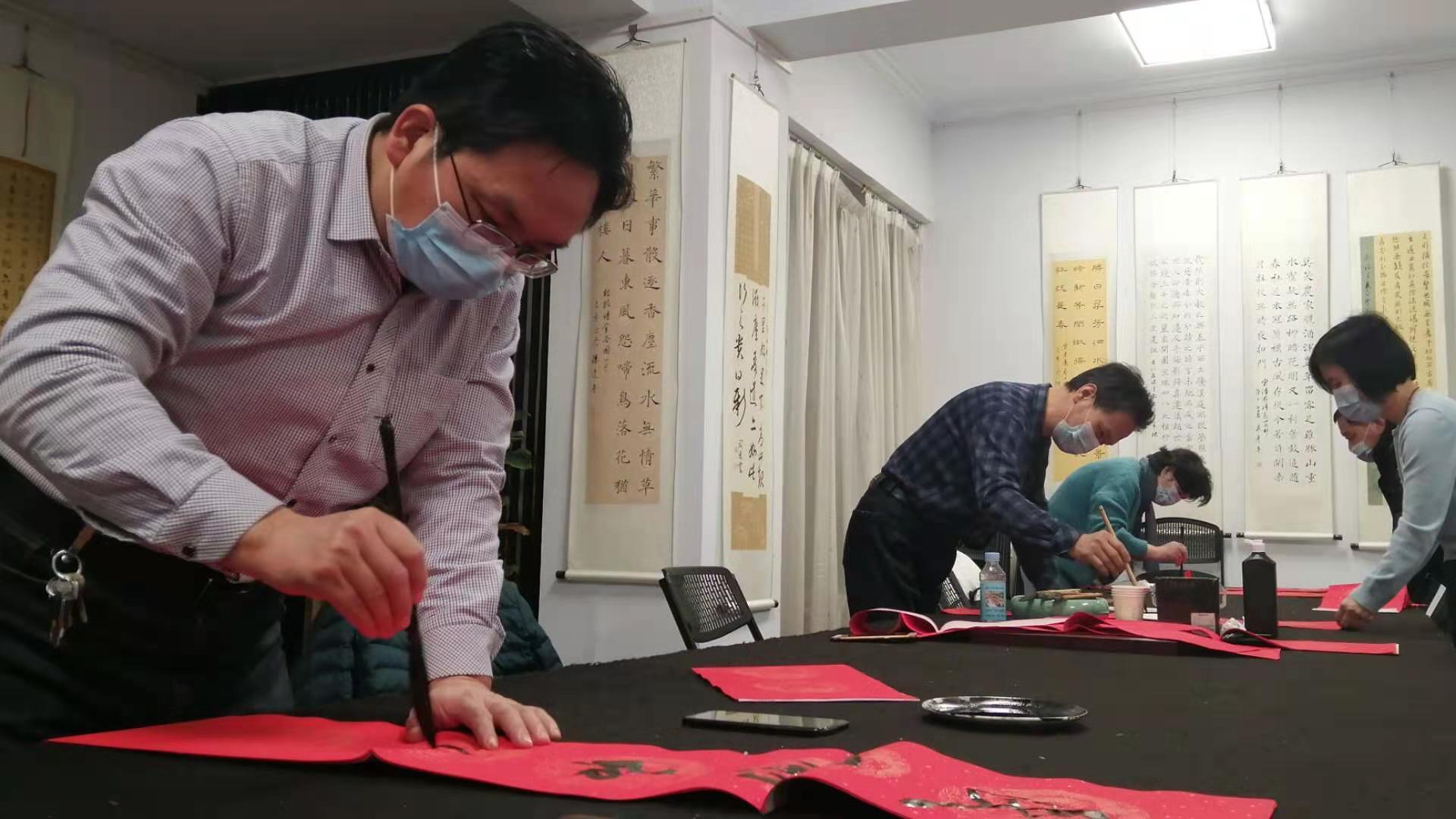 二十余位书法家齐聚井陉书画院书写春联。张志海 摄