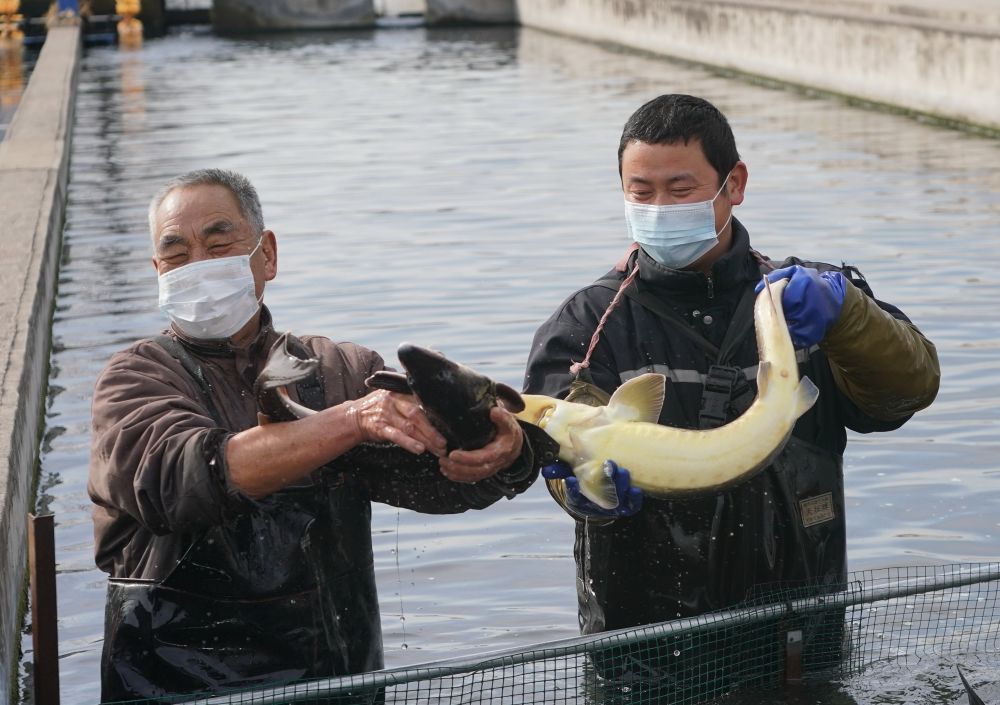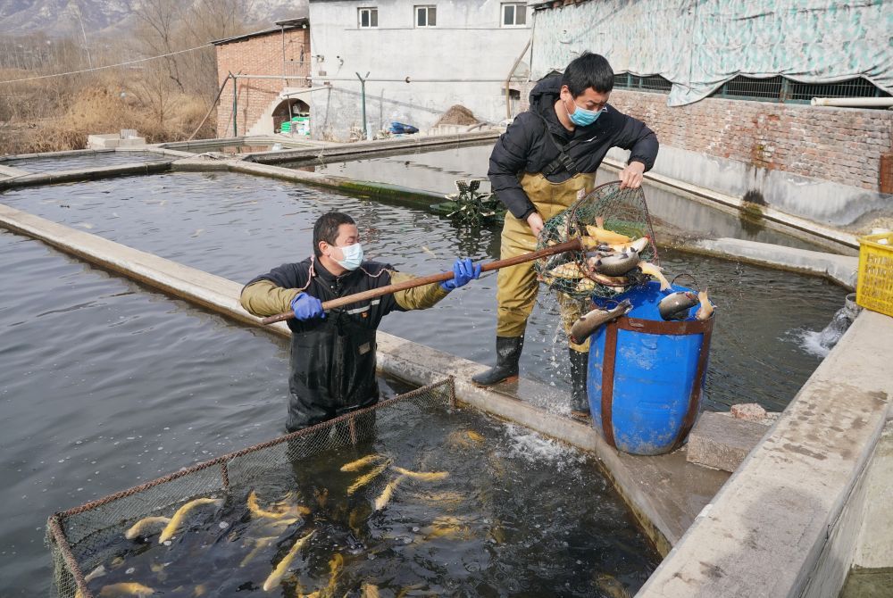 春节临近,石家庄市井陉县威州镇鲟鱼、虹鳟鱼等鱼类养殖合作社社员开始捕捞成品鱼,供应市场。据介绍,近年来威州镇依托当地自流地下冷泉水资源优势,因地制宜发展鲟鱼、虹鳟鱼等鱼类养殖,水面面积达2000亩,为当地群众探索出一条绿色生态致富路。
