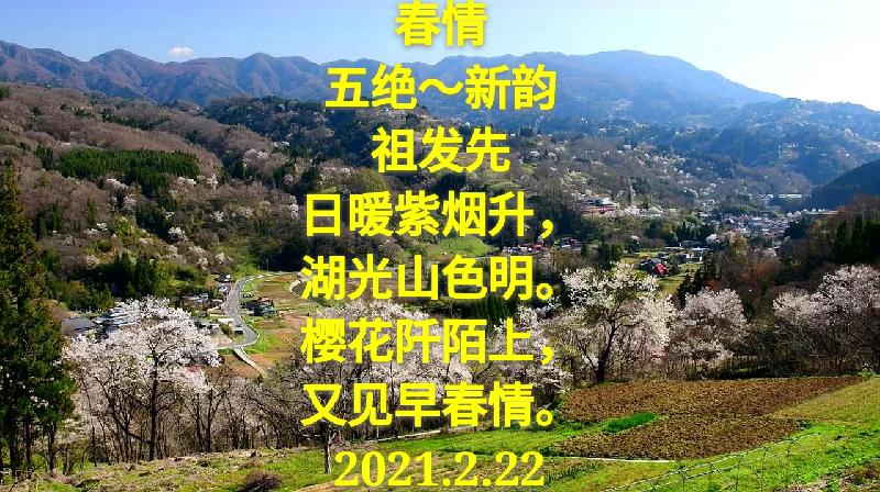 春情 五绝~新韵 祖发先 日暖紫烟升, 湖光山色明。