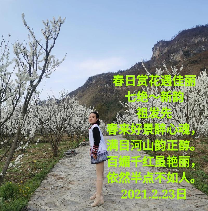 春日赏花遇佳丽 七绝~新韵 祖发先 春来好景醉心魂, 满目河山韵正醇。