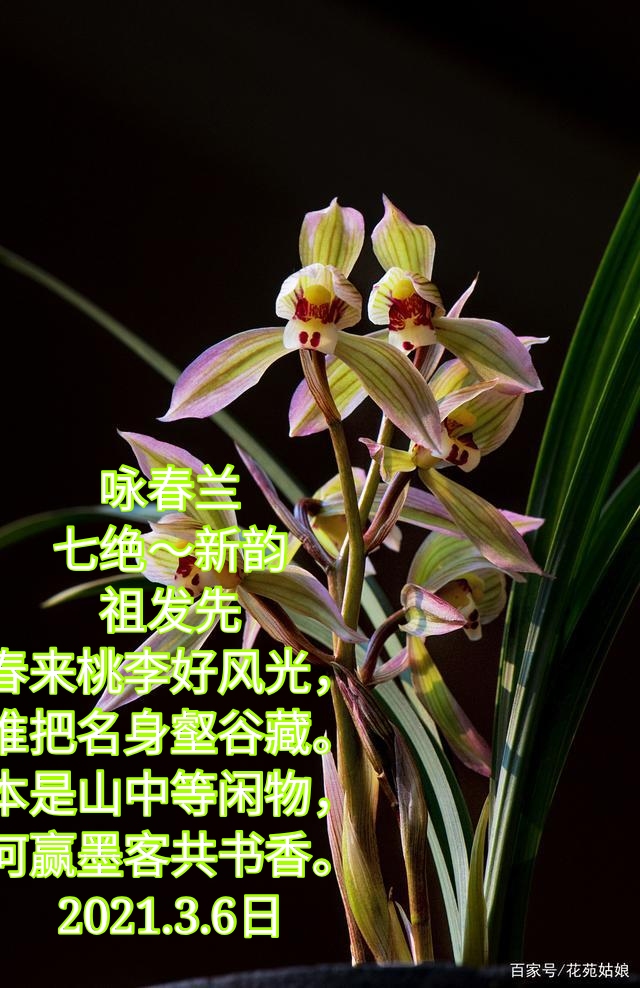 咏春兰 七绝~新韵 祖发先 春来桃李好风光, 谁把名身壑谷藏。