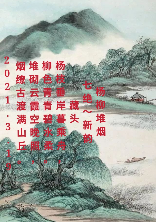 \ 杨柳堆烟 七绝~新韵 藏头 杨枝垂岸暮乘舟, 柳色青青碧水柔。