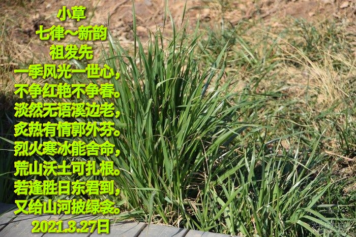 小草 七律~新韵 祖发先 一季风光一世心, 不争红艳不争春。