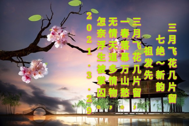 三月飞花几片留 七绝~新韵 祖发先 三月飞花几片留, 一春落幕万山愁。
