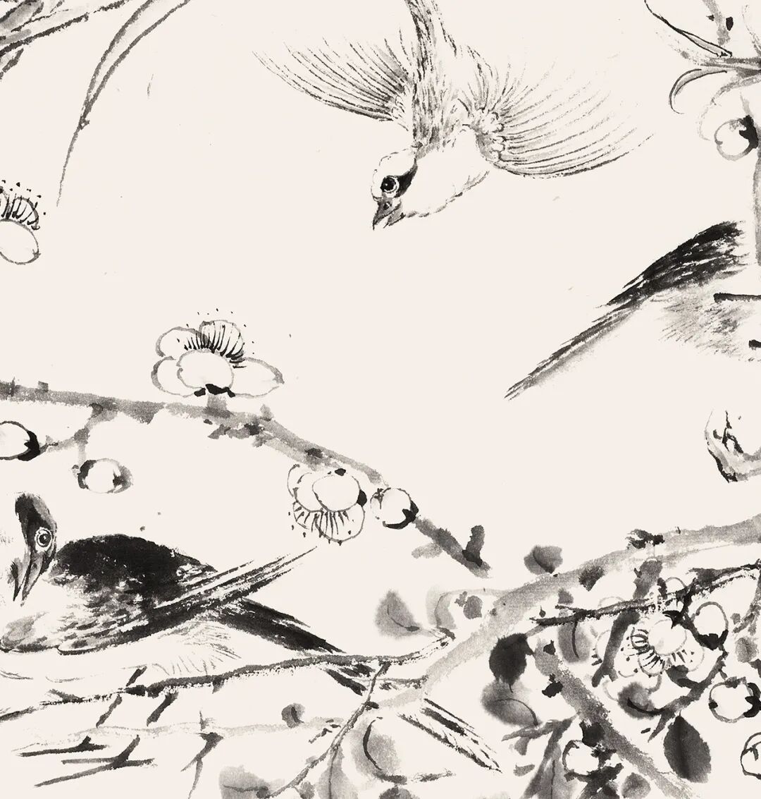 这种感伤不是杜鹃啼血,也不是哀伤自怜,是一种寂寞而无可奈何的况味。它来自作者对自然的敏感,对生命的洞察。画家,尤其是花鸟画家,需要这种敏感与洞察。此外,对生活的感受也极为重要。李兴杰作画,强调真切的体会和感动。他在“花间集”座谈会上说过的一段话令人印象深刻:“从古至今,有些东西是有共性的,古人要面对,我们也要面对,就是对生命的理解。因为生命总是会消失的,花总是要落的,总会有一些感触,不管再过多少年,这些东西还是永恒的。” 花鸟画之所以历经千年依然充满生命力,原因就在于此。笔墨或许是传统的,感受却永远是新鲜的。李兴杰的笔墨与其师沈光伟先生一脉相承,含蓄中蕴藏无限生机。光伟先生的教学一向以开放和因材施教而闻名,他的弟子们“生生之美”的审美取向相同,艺术风格却面目各异。在这种氛围下,兴杰早早地显露了艺术上的进取心:他在构图上突破花鸟画的常规,时有出人意料之笔;他在用笔上吸收了山水画的皴法,别有一番韵致。更难得的是他作品中表现出的境界,清冷而有机趣,给观者留足玩味的空间。