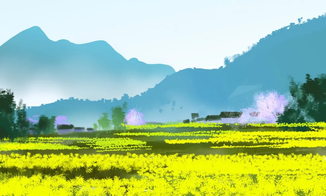 每当春潮袭来,田野里含苞待放的油菜花转瞬间开成了一大片黄灿灿的花海,微风荡漾时,一簇簇摇曳的油菜花宛如一幅巨大的黄丝绸在田野里迎风飘扬,浓浓的花香溢满村庄的每一个角落,让生活在这里的村民心旷神怡……