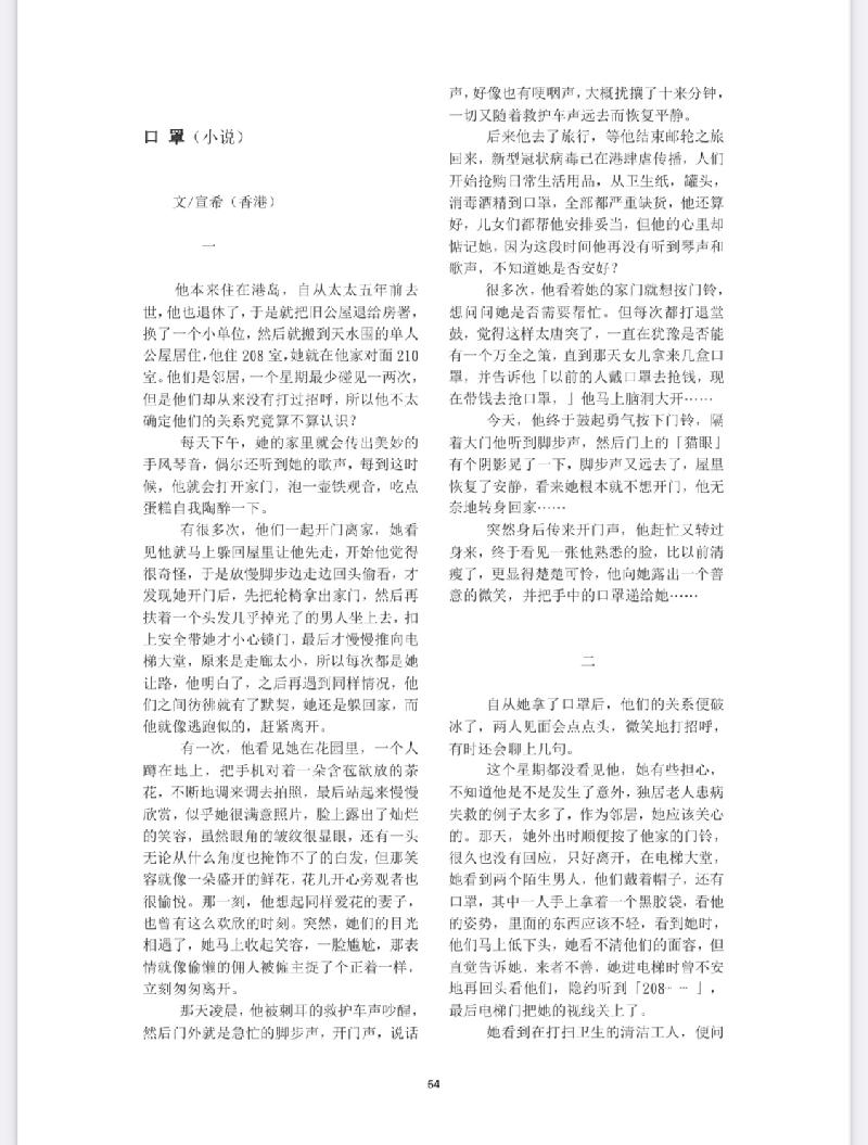 \ 【今音中外文学评论】宣希小说《口罩》赏析之三