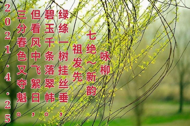 \ 咏柳 七绝~新韵 祖发先_ 绿绦一树挂丝垂, 碧玉千条落翠帏。