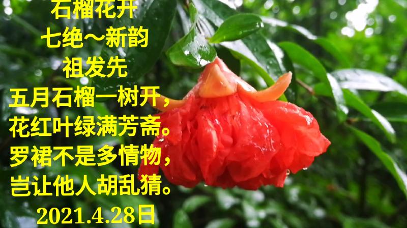 石榴花开 七绝~新韵 祖发先 五月石榴一树开, 花红叶绿满芳斋。