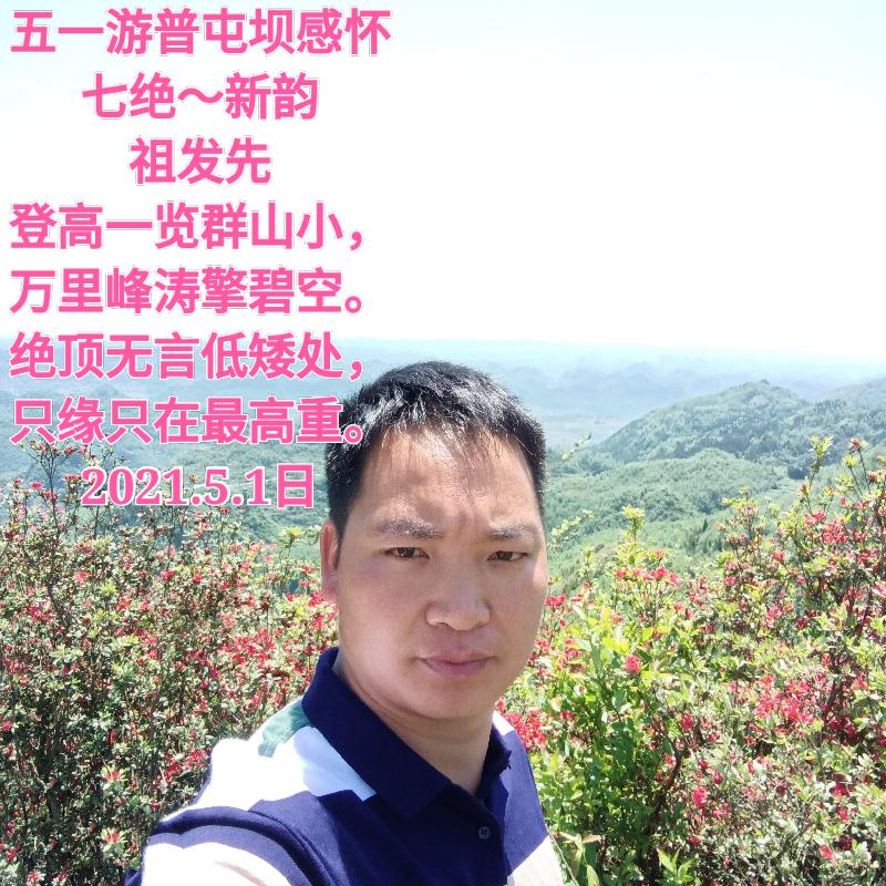 \ 五一游普屯坝感怀 七绝~新韵 祖发先 登高一览群山小, 万里峰涛擎碧空。 .