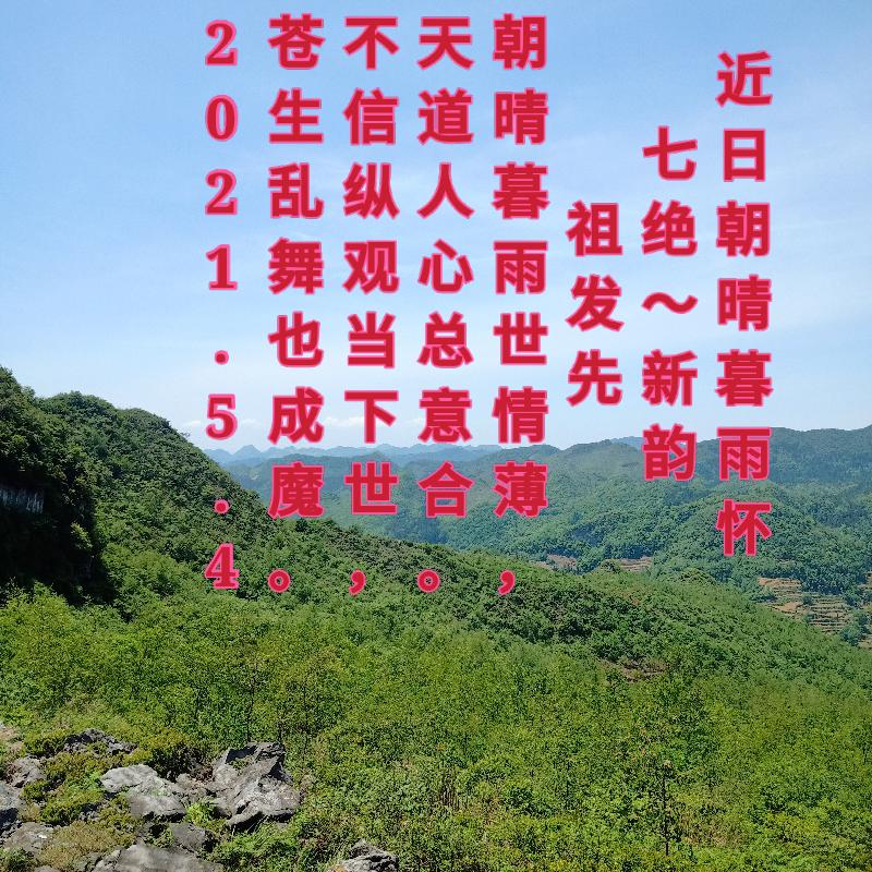 \ 近日朝晴暮雨怀 七绝~新韵 祖发先 朝晴暮雨世情薄, 天道人心总意合。