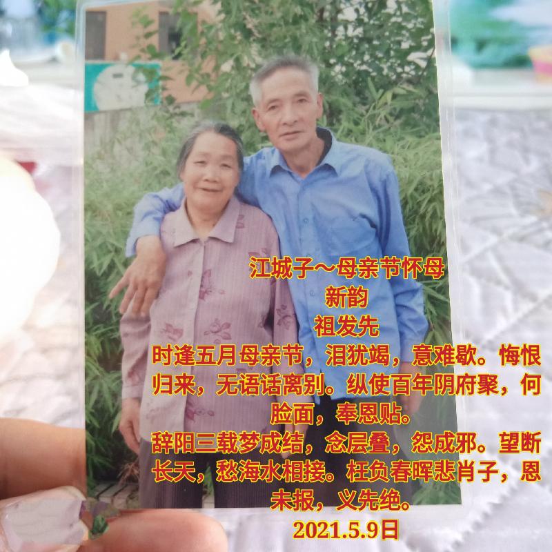 时逢五月母亲节,泪犹竭,意难歇。悔恨归来,无语话离别。纵使百年阴府聚,何脸面,奉恩贴。