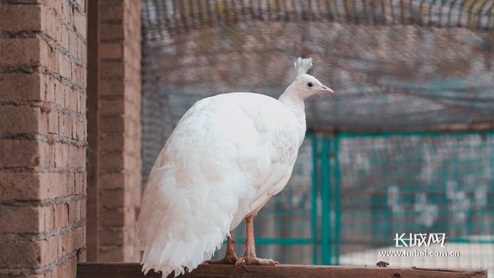 孔雀养殖场培育的白孔雀。长城网记者 张超 摄