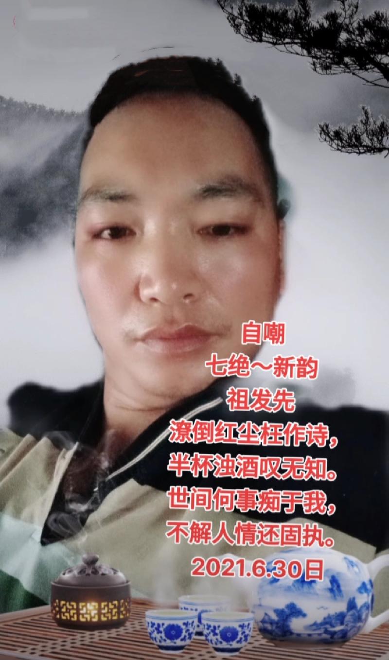 自嘲 七绝~新韵 祖发先 潦倒红尘枉作诗, 半杯浊酒叹无知。