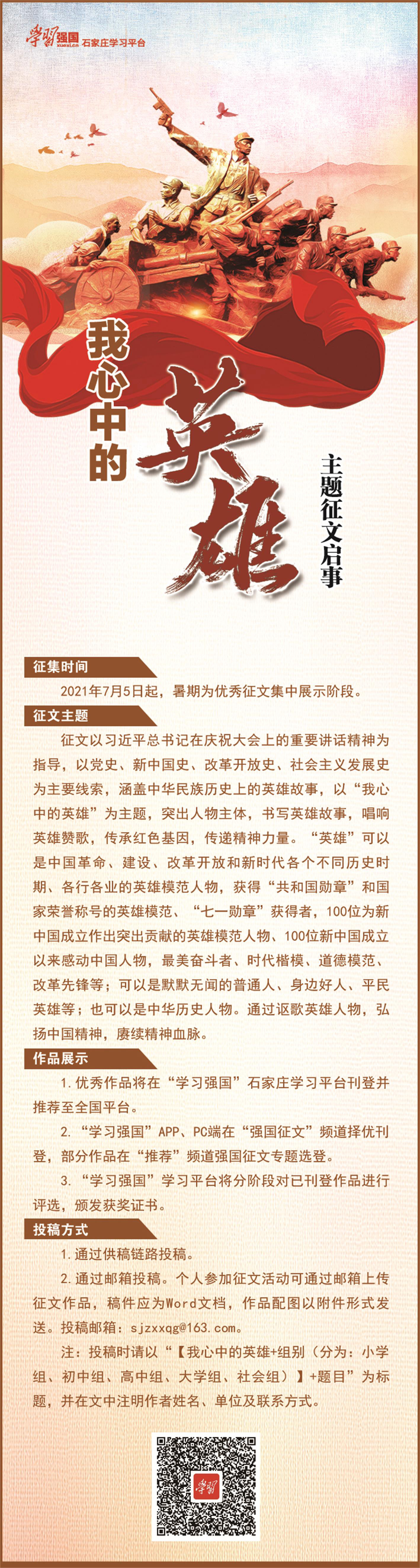 “学习强国”石家庄学习平台“我心中的英雄”主题征文启事