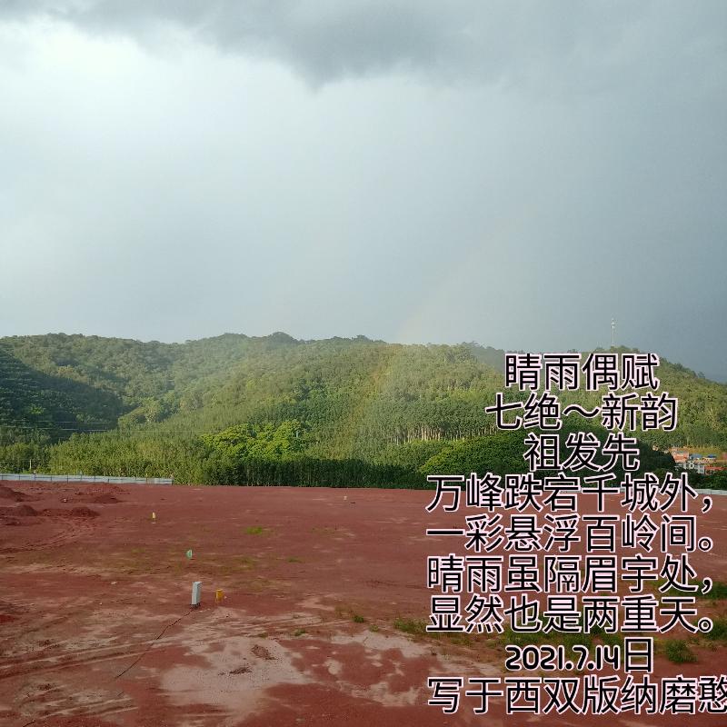 睛雨偶赋七绝~新韵祖发先万峰跌宕千城外,一彩悬浮百岭间。