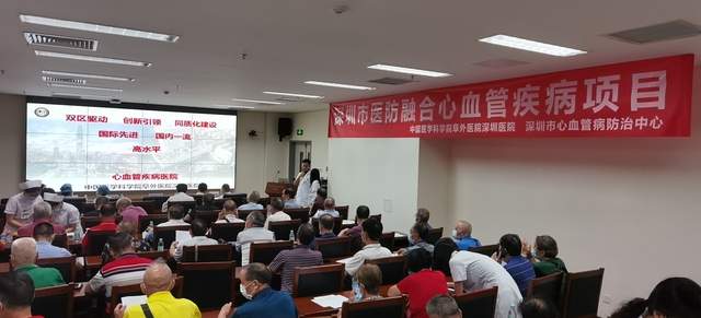 义诊检测流程完成后,在医院行政大楼一楼的会议室,进行了心血管疾病的防治急救措施讲座及义诊专家和退役军人的交流座谈会。义诊由陈伟新副院长主持。他首先代表深圳阜外医院向在场退役军人表示热烈的欢迎,并强调退役军人是人民的光荣和骄傲,更是民族宝贵的精神财富;举行义诊活动,既是对他们表示崇高敬意,也是教育医院职工要以军人为榜样,听党话、跟党走,继承发扬军队的优良传统,敬岗爱业。