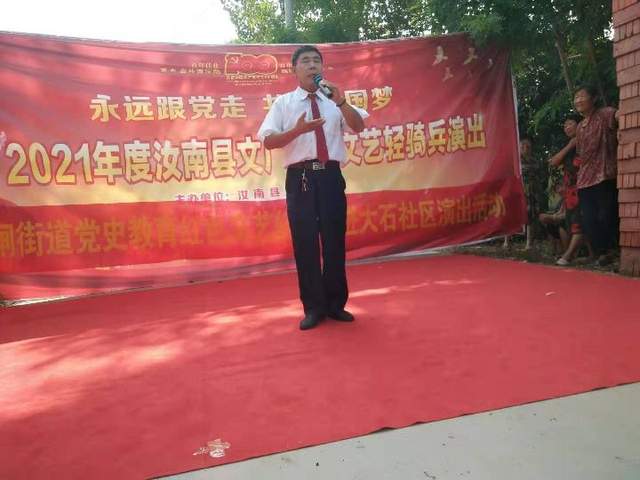 汇报演出,拉开序幕。7月23日晚,有汝南县文广旅局主办,汝宁街道办事处协办的汝南县“红色文艺轻骑兵”汇报演出,在天中山文化园广场隆重举行。演出以“颂歌献给党、讴歌新时代、阔步新征程”为主线,节目突出红色主题,热情歌颂党的丰功伟绩,赞美今天的幸福生活,表达了天中儿女听党话、感党恩、跟党走,奋斗百年路、启航新征程、建设新汝南的豪情壮志!整场演出主题鲜明、结构严谨,非常精彩。从此,拉开了全县“红色文艺轻骑兵”为主题的送文化下乡巡回演出活动的序幕。 不惧酷暑,坚持巡演。