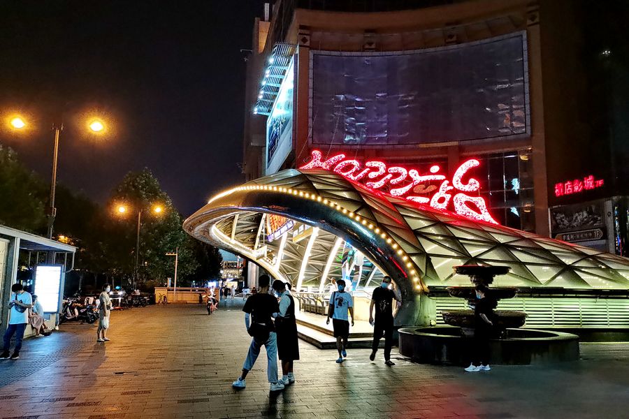 2021年8月3日晚8:30—9:00,汉口平日最热闹的中山大道江汉路是这样的。7月下旬“德尔塔”从南京进入,波及多地,武汉也有了3例确诊,江城武汉又一次宣布全员进行核酸检测。街上的游人明显减少,市民的防范意识非常强,以此存照。