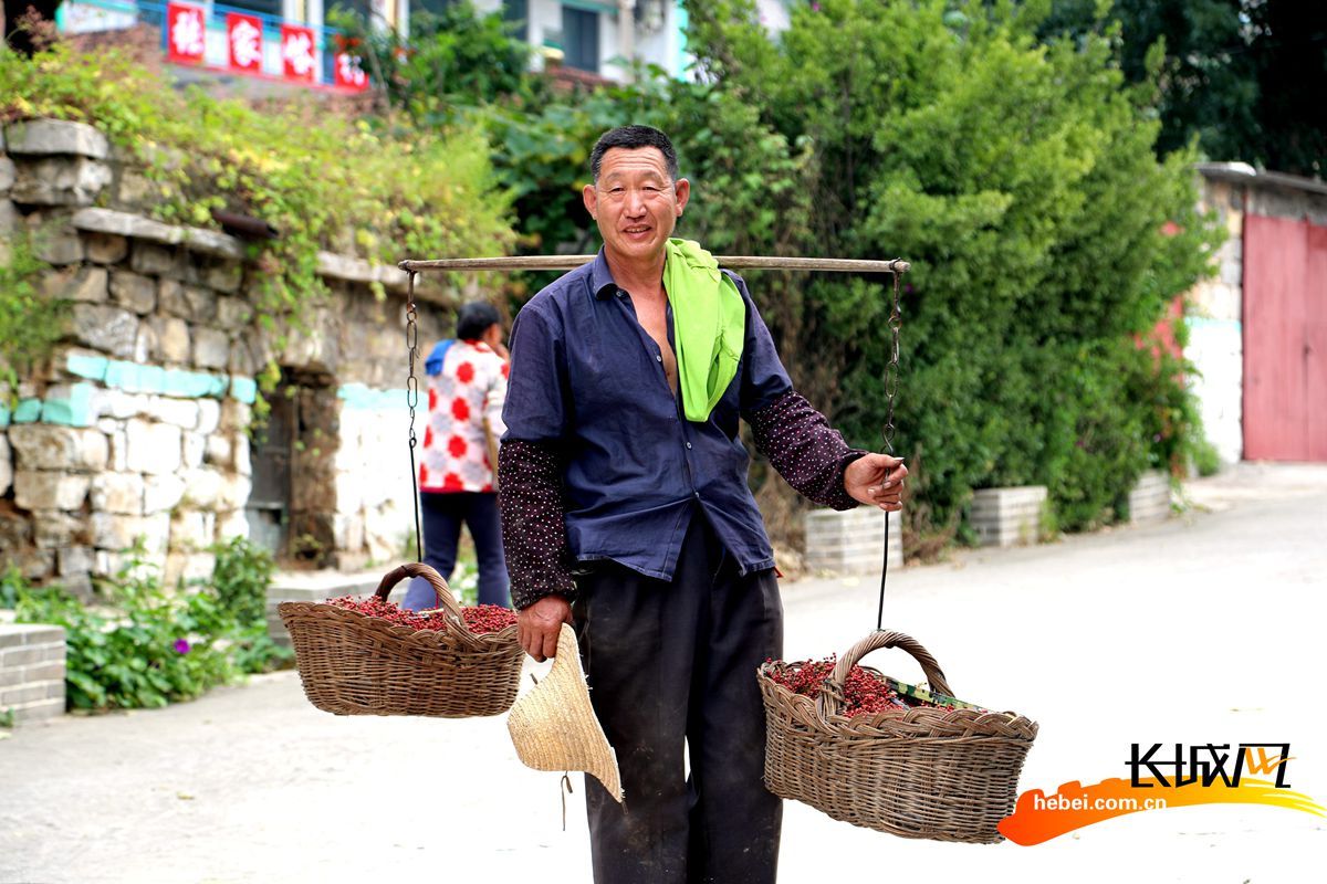 村民挑着刚采摘的花椒,脸上满是丰收的喜悦。