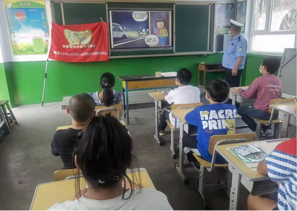 交警在各校园摆放了精心制作的交通安全知识宣传展牌,张贴了小学生交通安全知识教育海报,针对山区儿童的特点,深入浅出地讲授了人车分流、行走安全、乘车安全等方面知识。活动中,交警播放了交通安全宣传视频,教育孩子们过马路遵守交通规则,行走人行横道,不横穿马路,外出不乘坐不具备资质的车辆,防止意外发生。同时,交警还为学生们发放了《儿童交通安全教育读本》《交通安全知识画册》等宣传材料,赠送了写字本,让孩子们不仅自己学习好交通安全知识,还让他们把宣传材料带回家给家长阅读,起到教育一个学生、带动一个家庭、辐射整个社会的宣传效果。