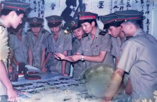李桂强先生在辅导战士书法创作