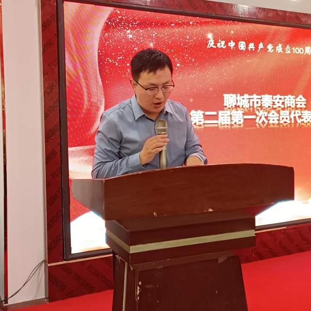 会议开始,由会长李瑞勇做工作汇报。李瑞勇表示,聊城市泰安商会成立于2017年9月26日,自成立以来,在市委、市政府相关部门的领导下,在各位同乡、会员的支持下,商会与时俱进、锐意进取,不断发展,现已成为推动会员企业发展、联络聊泰两地的重要力量,获得了市委领导和社会各界的广泛肯定。近几年主要工作:(一)加强党建工作建设、提升商会组织战斗力。商会自成立以来,始终把商会党建工作放到所有工作的首位,积极开展各项党建活动。尤其今年是中国共产党成立100周年,在党百年华诞的重大时刻,在“两个一百年”奋斗目标历史交汇的关键节点,商会组织开展了一系列“庆祝中国共产党成立100周年”主题党建活动。组织会员参观了泰安毛公山红色文化博览馆、肥城陆房战斗纪念馆、聊城高新区红色文化展览馆、聊城市科技馆百年党史教育展厅、阳谷刘邓大军强度黄河战役纪念馆等各类红色展馆,组织会员集中观看了建党100周年庆祝大会实况,通过党员主题教育活动,商会会员的政治素质和业务素质得到全面提升;(二)搭建交流共享平台、提升协调发展能力。商会自成立以来,坚持做好信息桥梁作用,积极对接各类政府、商会、企业、媒体资源,提升商会综合发展实力。商会交流方面,与河北省山东商会、淄博市鲁西南商会、东阿阿胶协会建立战略合作关系,确定合作发展、共享共赢的工作目标;银企合作方面,与聊城市农商银行在过往业务合作的基础上进一步深化,结成党建共建合作单位,党建互促互进的政治优势将更好地转化为发展优势,进一步推动双方合作的发展;政企沟通方面,商会应邀参加冠县“双招双引”主题推介会,参加市工商联业务发展推进会,并积极促成东阿县工商联肥城市走访一行,加强了与政府领导部门的联系,树立了商会良好的形象;同乡联谊方面,成功举办了2021商会企业家恳谈会,聊城市委副书记李春田、市政协副主席葛敬方、市委统战部副部长、工商联党组书记徐文华、泰安市市委统战部副部长、市工商联党组书记高树顺等各级领导到场祝贺,全体泰安籍同乡同聚一堂、共叙乡情,进一步凝聚了人心力量,商会在聊城和泰安的影响力全面提升;(三)积极投身公益事业 ,切实履行社会责任。几年来,商会积极投身于社会公益事业,履行社会责任。多次组织会员担当交通出行志愿者,引导群众遵守交通规则,文明出行。端午节期间,开展了走访福利院、养老院等活动,为老人带去礼品和问候,洪水疫情期间,积极进行捐款捐物活动,商会的公益行为在社会上引起了较好的反响,树立了泰安商会勇于奉献、敢于担当的社会形象。