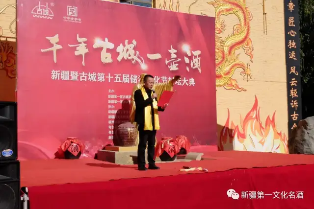 由奇台县委副书记、县长刘强同志宣布“千年古城一壶酒“新疆暨古城第十五届储酒文化节”开幕。