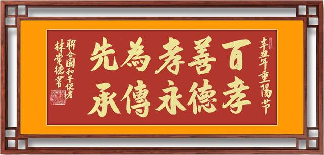 联合国和平使者林常德,为重阳节活动题写贺词:“百善孝为先,孝德永传承。”