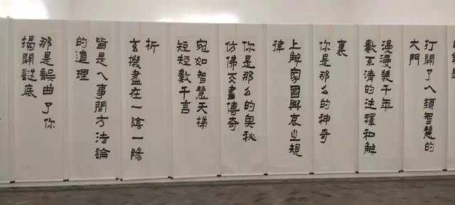而其展览作品的内容,则是以九种艺术形式,书写了十一篇文章,全部为中华民族优秀传统文化。即:三字经、百家姓、千字文、弟子规、弟子职、中国书画千字文;共有400余幅书法作品展出;其以小楷、小隶书写了周易全文、孔子十翼全文“双百米长卷”,已在元月份入选“大世界吉尼斯纪录之最并颁发了证书”。