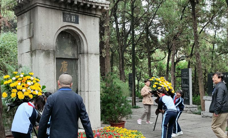在颁奖典礼开始前,与会领导、嘉宾,在白园为白居易墓冢敬献了花篮,龙门一小的小诗歌爱好者现场朗诵了白居易在洛阳留下的诗作。