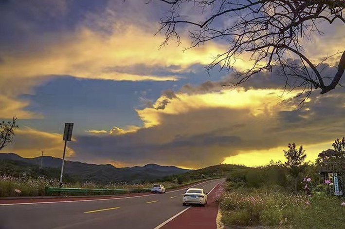 位于石家庄市井陉县的太行天路,秋日暖阳下彩云飘飘,景色怡人。王会萍 摄