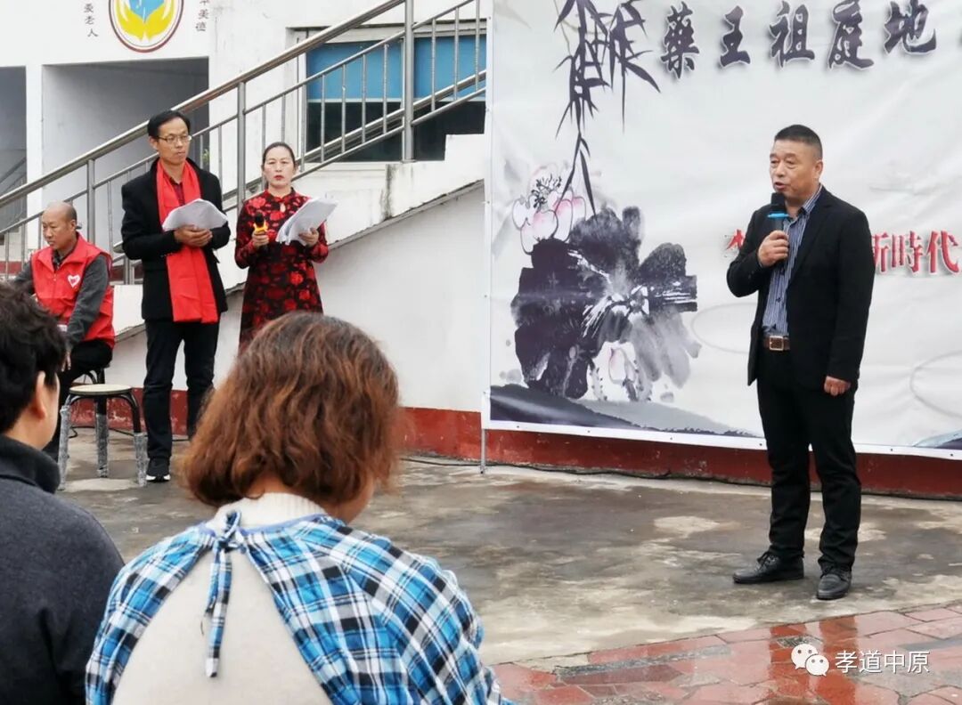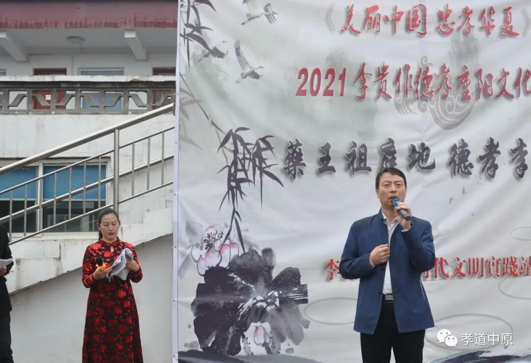 这次莅临服务的领导嘉宾有: 被周总理、邓小平、聂荣臻老一辈领导人多次接见的酒泉导弹基地老兵戴明章老师及其夫人王华莲老师;国家三通定向正骨研究会终身专家、中华第一届脊柱研讨会特邀导师,国际铁人三项赛指定保健师,来自北京中国空军司令部门诊部的吴朝干老师;美丽中国志愿者、来自北京的特别领导张刚斌老师;美丽中国志愿者、美丽中国传统文化德孝示范基地、中华德孝示范村造店村书记程冬冬老师;美丽中国志愿者来自郑州85岁的(大姐)志愿者孙淑芳老师;来自58服务的美丽中国志愿者古秀玲老师;美丽中国志愿者杨利军老师、郝国惠老师、刘兵老师、李争光老师、段健民老师;焦作市自然资源局主任沈壮德老师;山阳区宣传部副部长樊成忠老师;驻村第一书记马红海老师;中星街道办事处人大主任樊磊磊老师;中星街道办事处纪检书记郭荣歌老师;李贵作农业种植专业合作社负责人李好勇老师;焦作市政协委员、焦作市追梦公益爱心会发起人、焦作市女性创业协会副会长、山阳区企业家协会常务理事、天方古印董事长高香竹老师;美丽中国志愿者、中站区统战部副部长、中华德孝示范村造店村驻村第一书记朱友强老师;中国人生科学学会传统文化焦作基地主任朱士祥老师、胡荣老师;博爱县育本国学会会长孙志江老师;美丽中国武陟县国学会会长王卫东老师;美丽中国修武县国学会会长赵小兵老师;美丽中国志愿者任弟老师、紫颖老师、紫玉老师、张战旗老师;美丽中国志愿者、传统文化践行者、弘扬者、雨花敬老家园焦作负责人陆永清老师及雨花斋家人等。 图片 活动有来自省会郑州的传统文化优秀主持人李巧英老师,和许衡文化教育中心主任苏连普老师全程主持,李贵作两委干部、党员、积极分子等全程服务,整个活动在庄严威仪的升国旗唱国歌中拉开帷幕并殊胜圆满。