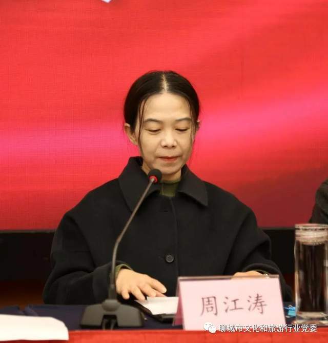 市文化和旅游局党组书记、局长周江涛同志首先致辞。周江涛在致辞中对会议的召开和受表彰的先进集体、先进个人表示了祝贺,对市文化和旅游行业党委一年来的各项工作给予了高度肯定,从坚持科学定位,坚持党的领导;坚持党建工作和业务指导一起抓等方面对行业党委的工作提出了要求。