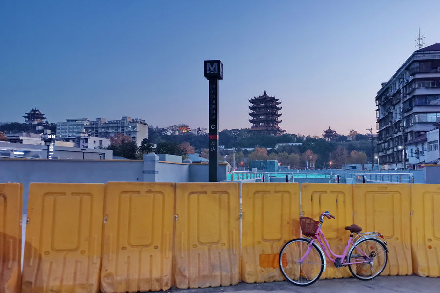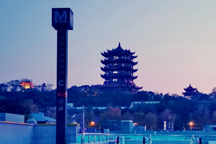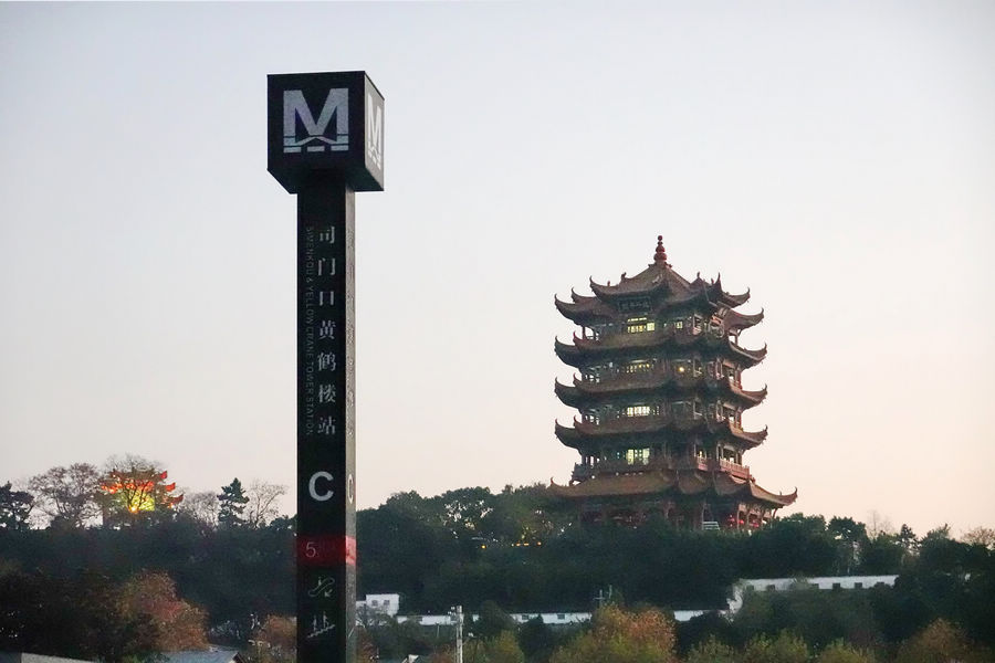 放眼望去,蛇山上黄鹤楼“鹤立鸡群”,公园的大部分也尽收眼底,尤为壮观。可以想见,待到地铁列车开到,这里会是多么热闹。